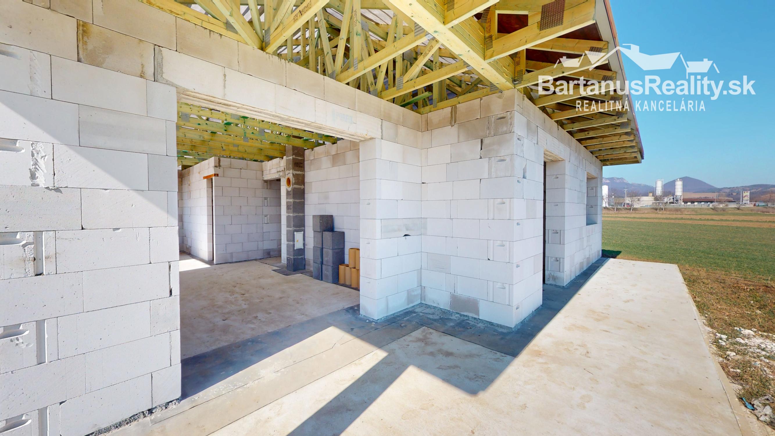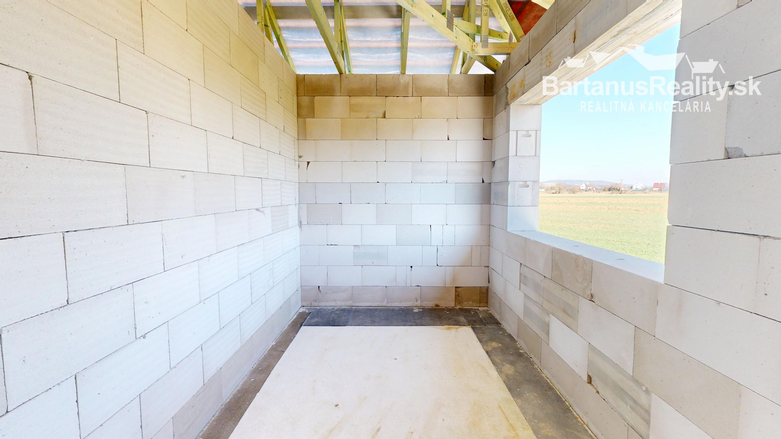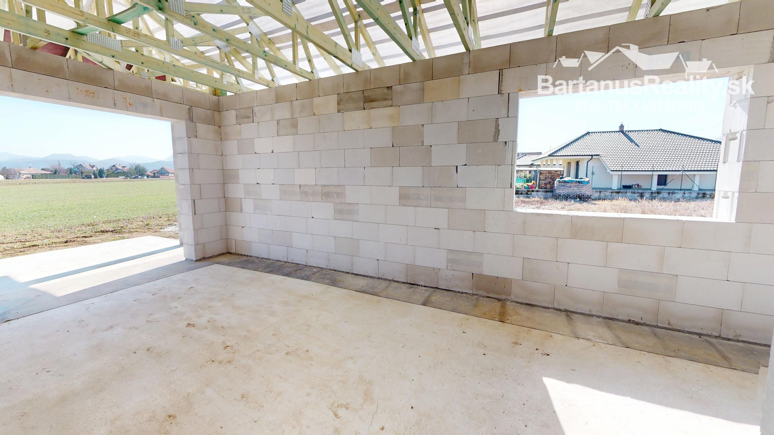 Dom sa bude odovzdávať v štádiu Holodom - uzavretá stavba s potermi, omietky, všetky vývody, predpríprava na podomietkové WC, plastové okná s izolačným 3 sklom, zarovnanie pozemku, príprava s vložkou Schiedel pre komín.