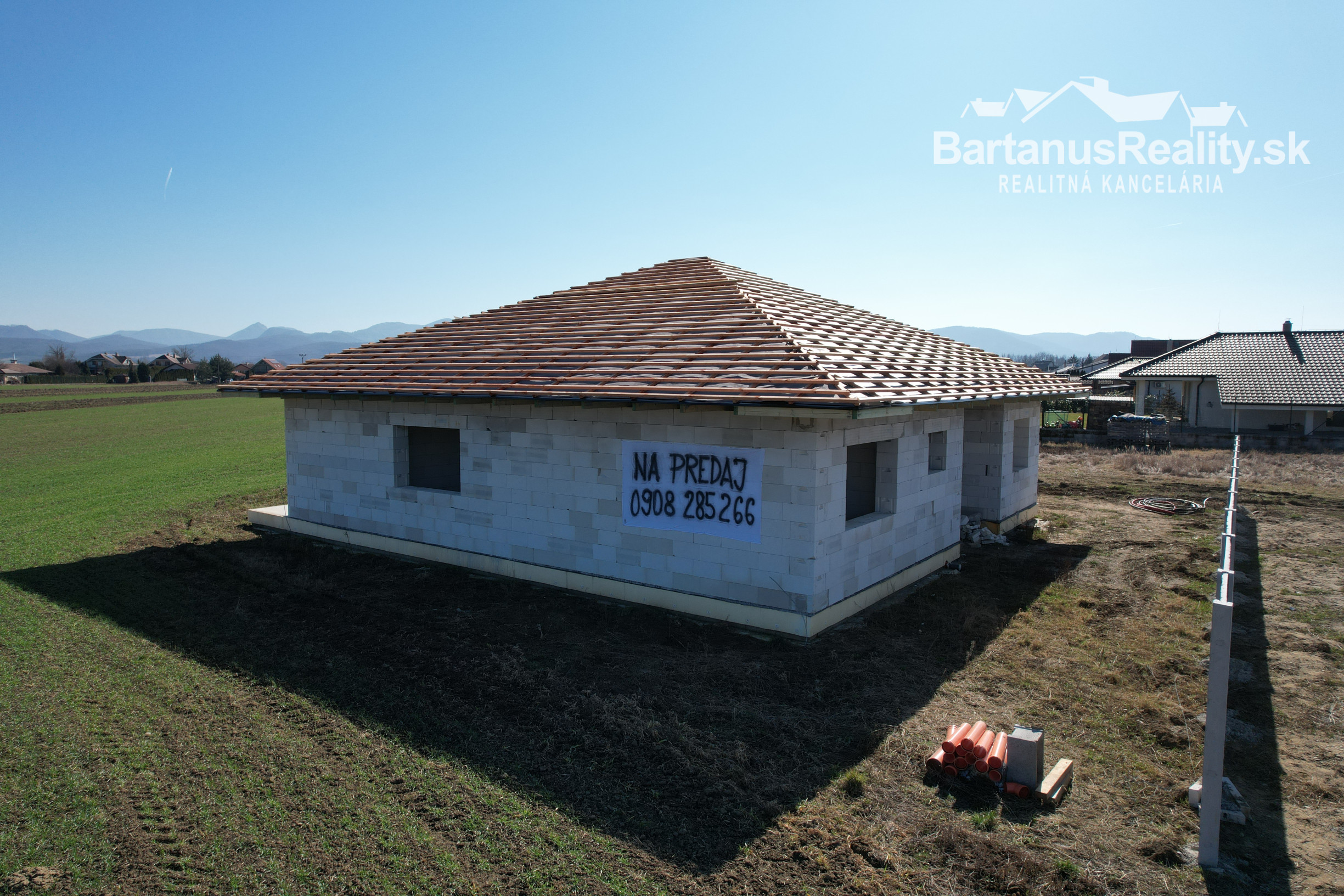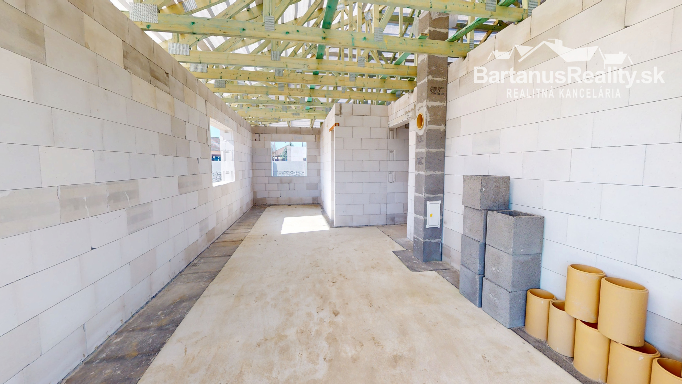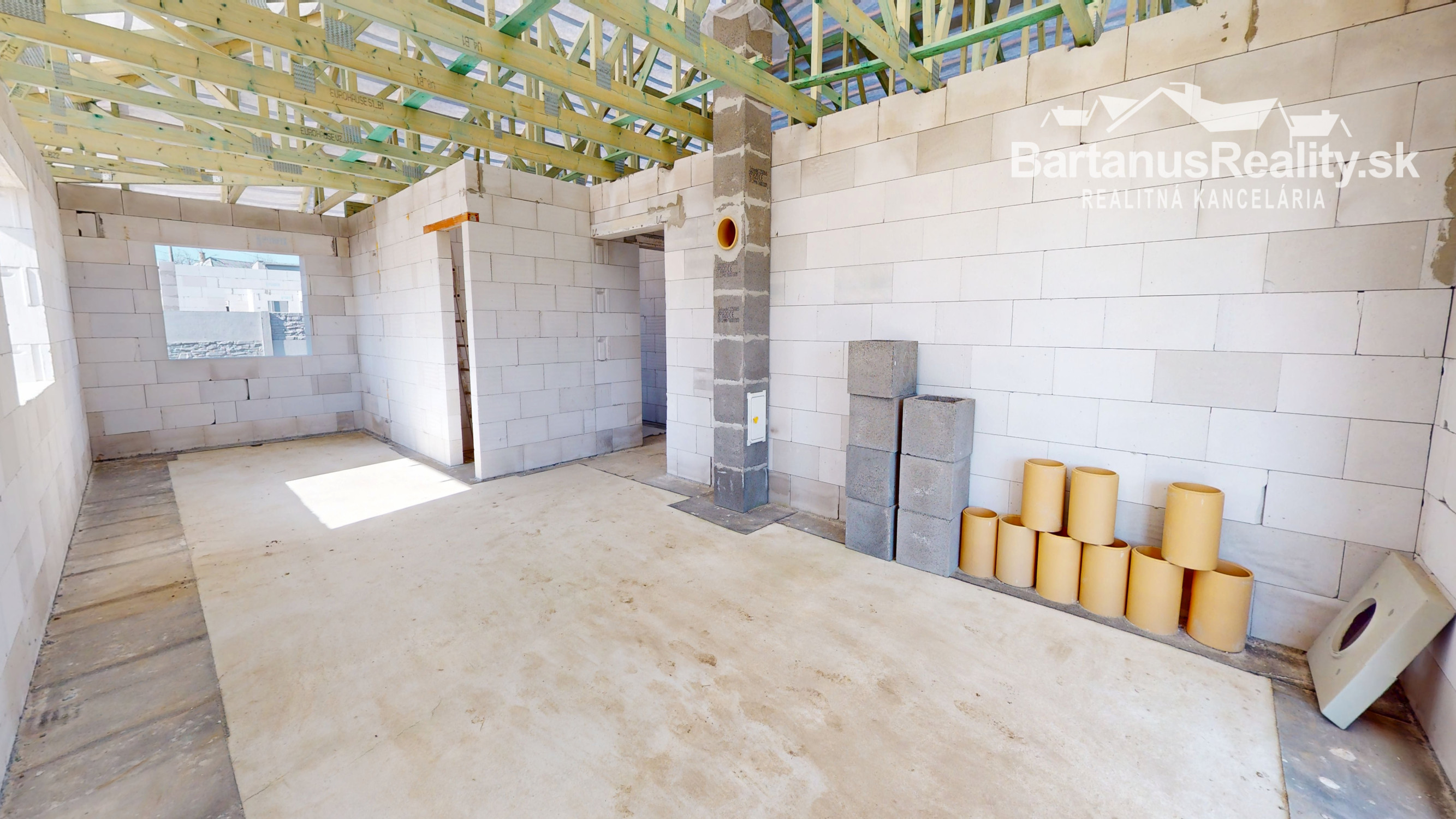 Dom sa bude odovzdávať v štádiu Holodom - uzavretá stavba s potermi, omietky, všetky vývody, predpríprava na podomietkové WC, plastové okná s izolačným 3 sklom, zarovnanie pozemku, príprava s vložkou Schiedel pre komín.