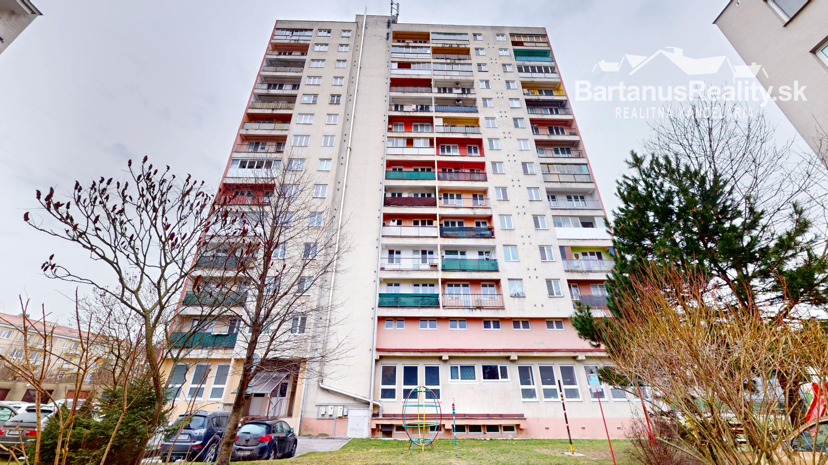 Byt je situovaný v panelovom bytovom dome na 12. poschodí z 13 s dvomi výťahmi.