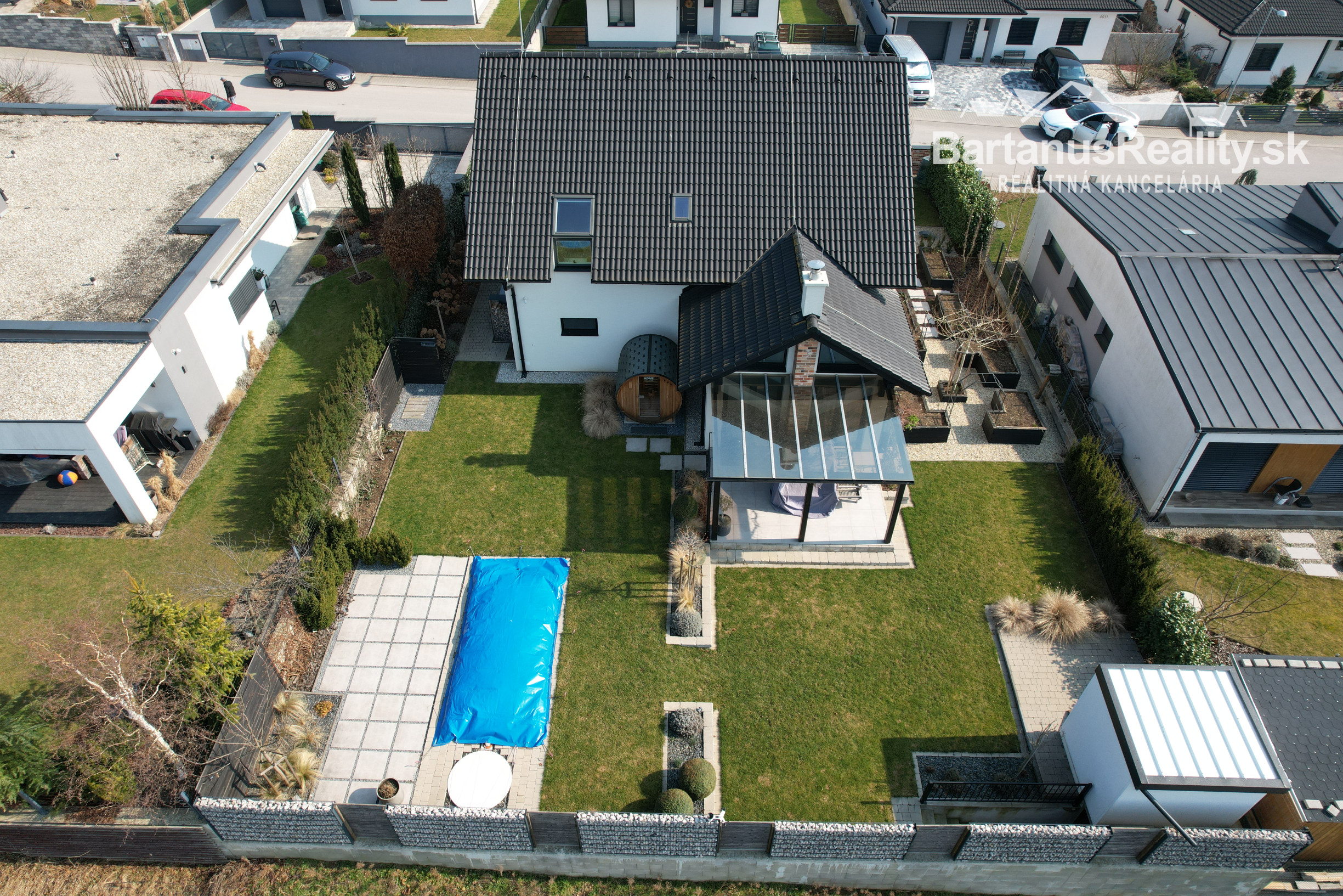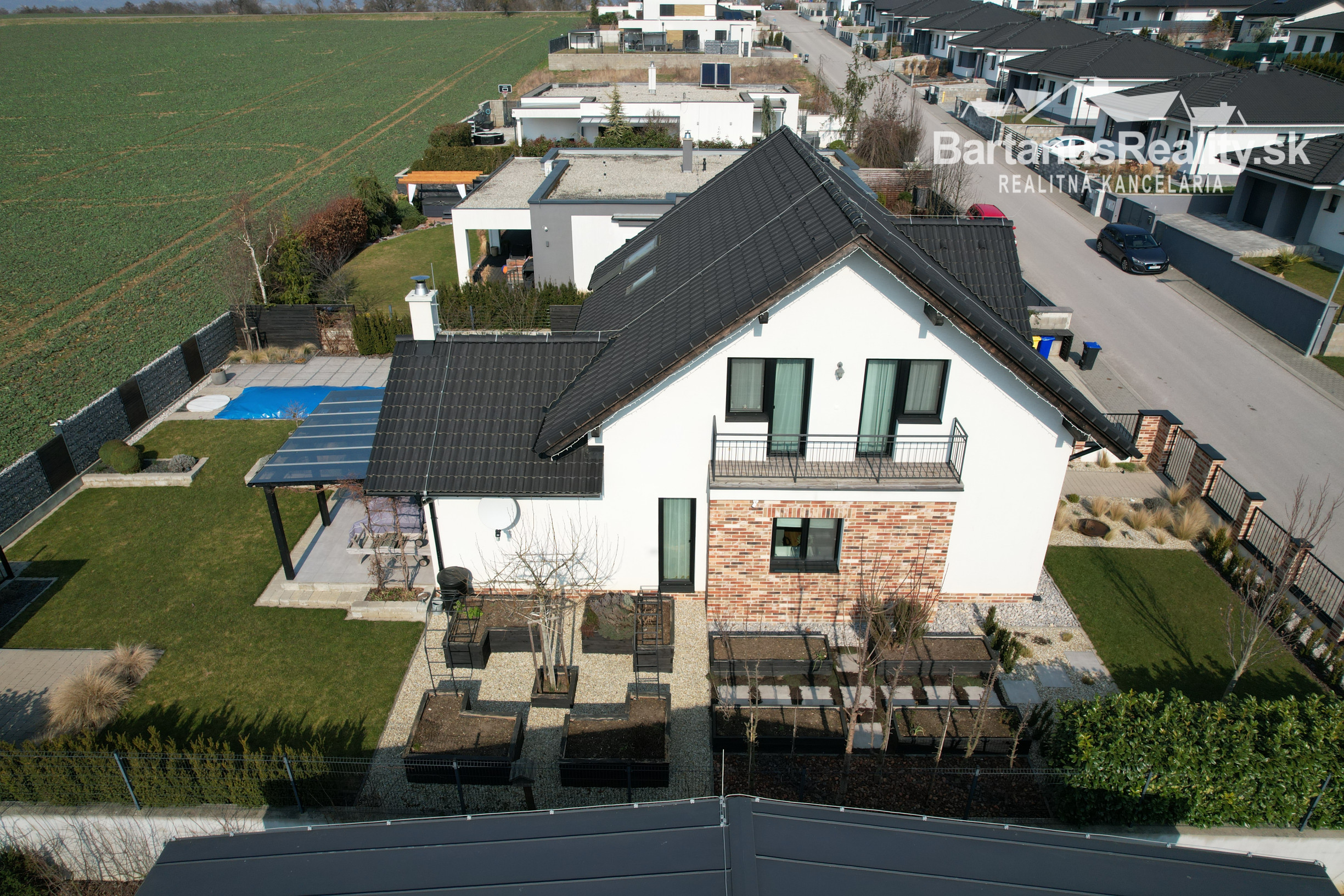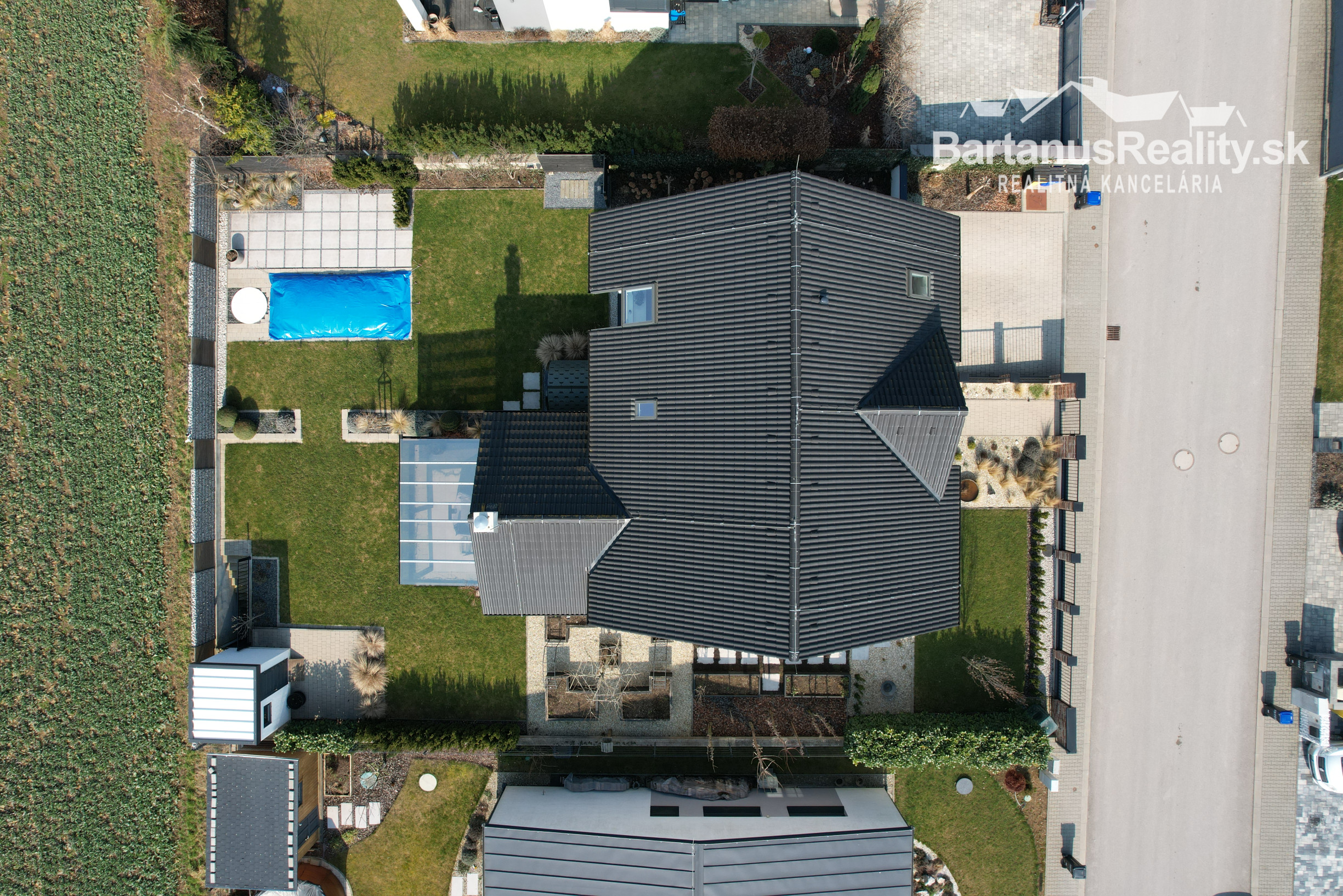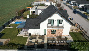 Zastrešenie je sedlové, škridľa Mediterran Danubia čierna.